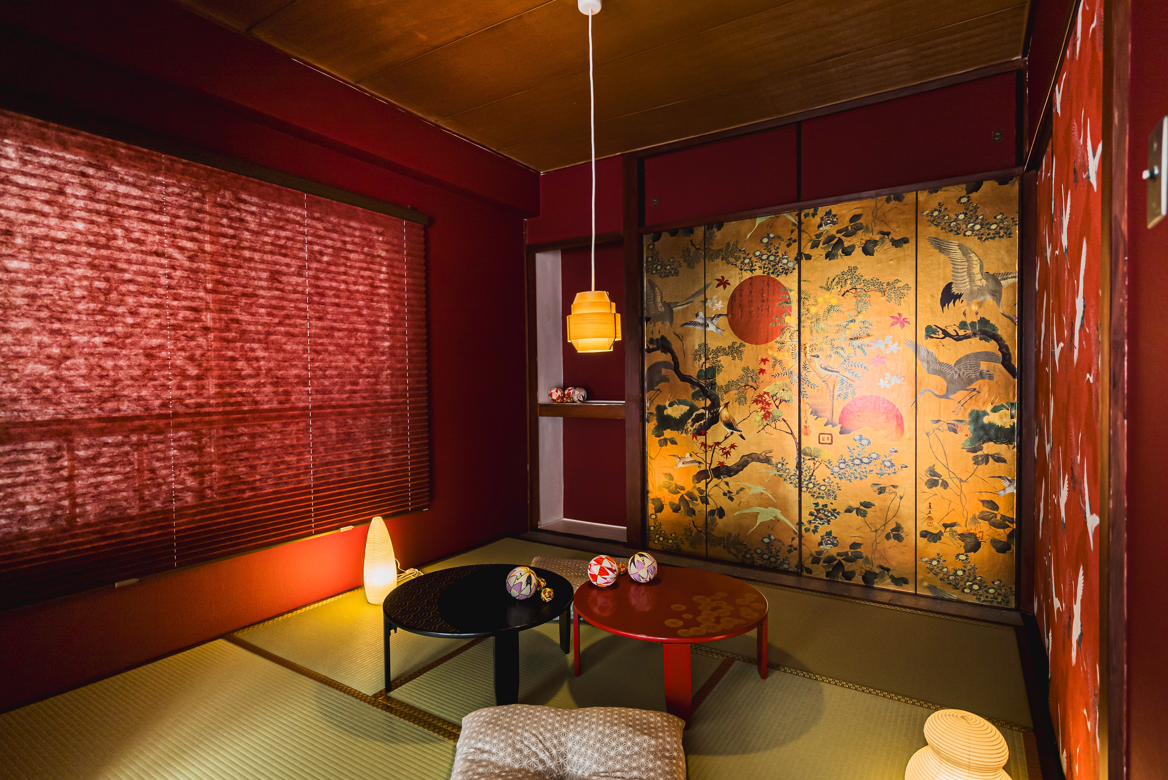 外国人向けの内装設計プランとなります。インパクトある和室が特徴の民泊物件を設計致しました。